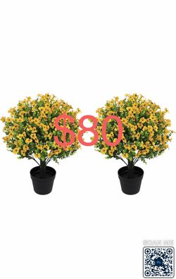 24" Artificial Eucalyptus Potted Plants Outdoor Set of 2 – UV Resistant Faux Topiary Greenery Fake Mums with Yellow Silk Flowers in Cement Pots for Fr$80Bakersfield, CA