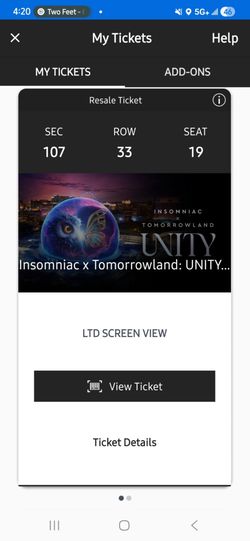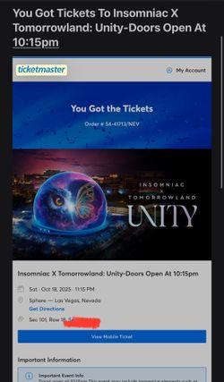 Insomniac Tomorrowland. Sphere Subtronics. Section 107 -2 Tickets $240Las Vegas, NV