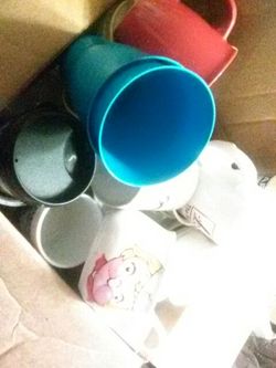 Diaper box full of plates cups bowels and coffee cups$15Sophia, NC