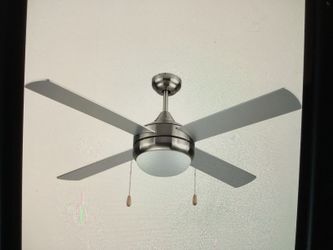 52” Ceiling fan Brush Nickel with 4 Blades with pull chain and white frosted glass light$50Ellenwood, GA