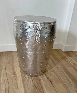 Hammered Silver Metal Studded round end table. 16 1/2 round x 25” tall$40Redlands, CA