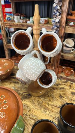 6 Tazas De Barro Blanca Con Base De Madera $70Los Angeles, CA