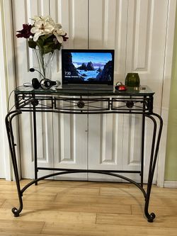 Metal Desk With Glass Top Plus Vase With Artificial Flower And Wall Mirror$50Lakeland, FL