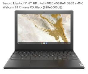 Lenovo IdeaPad 11.6"'" HD Intel N4020 4GB RAM 32GB eMMC Webcam BT Chrome OS, Black (82BA0000US)$120Carrollton, TX