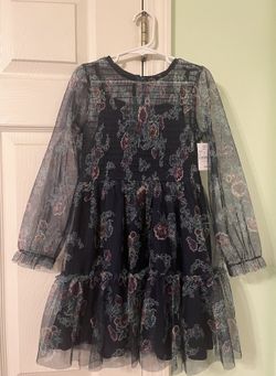 Girls Floral Print A-Line Mesh Long Sleeve Dress, Spring Easter Tiered Lace Formal Casual Dress, Dark Blue Purple Flowers, Size Small 6/7 *Brand New*$12Pumpkin Center, CA