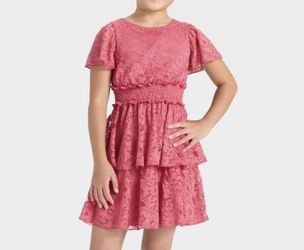 Zenzi Girls Tiered A-Line Dress, All Over Lace, Smocked Waist, Easter Spring Summer, Rose Pink Color, Size XS/Extra Small 4/5 *Brand New with Tags*$12Pumpkin Center, CA