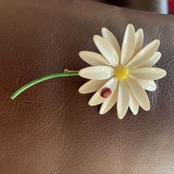 Vintage Or Antique Brooch , Daisy And Lady Bag , White With Green.$20Houston, TX