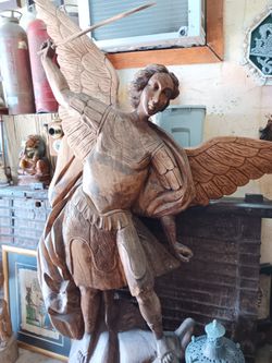 Wood Sculpture, 7 Feet Tall, Antique. Saint Michael Archangel. $800Miami, FL