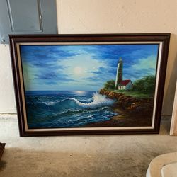 Lighthouse On The Coast Canvas Painting With Frame$30Bedford, TX