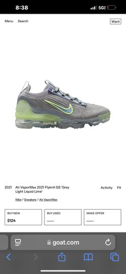 2021 Air VaporMax 2021 Flyknit GS 'Grey Light Liquid Lime'$150Downey, CA