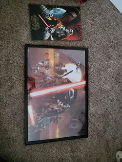 Starwars Wood Piece And Poster (Framed). $10Murrieta, CA