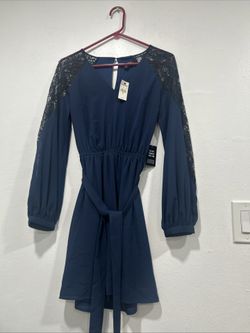 Express Dress Womens Navy V-Neck Ruffle Neck Sheer Sleeve Size XS$35Santa Ana, CA