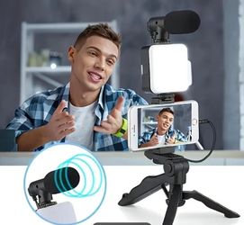 Phone Camera Vlogging Holder And Tripod Backlight Mic Remote Included New$19New Rochelle, NY