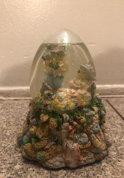 Vintage, Musical Snow Globe, Plays Easter Parade Bonnet Song, Features a Lady bunny drinking tea with Papa bunny bringing spring flowers$10Los Angeles, CA