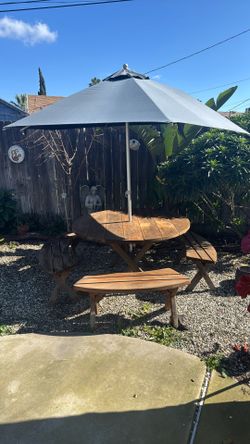 Wood Table With Benches And A Mist Umbrella$200Stockton, CA