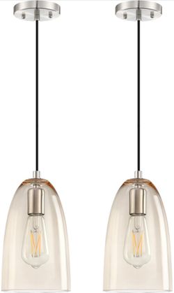 2 Pack 1 Light Indoor Hanging Kitchen Island Pendant Lights 5.3" Clear Amber Glass Pendant Light Fixtures,Brushed Nickel Finish Modern Farmhouse Dinni$30Aurora, OH