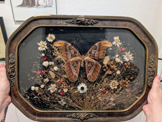 Entomology Taxidermy Real Atlas Moth In Large Vintage Frame With Pressed Dried Florals$200Avondale, AZ