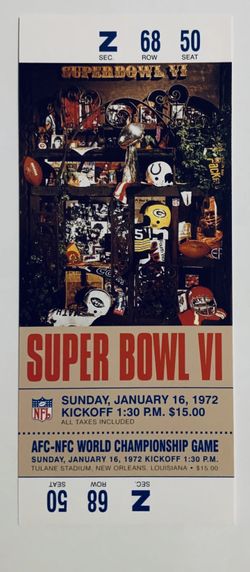1972 Super Bowl VI ( 6 ) Replica Ticket$22Scottsdale, AZ