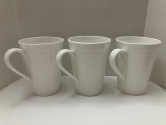 Lot of 3 MIKASA Swirl 12oz Mugs White Bone China Textured 4.5” Tall Striped EUC$15Las Vegas, NV