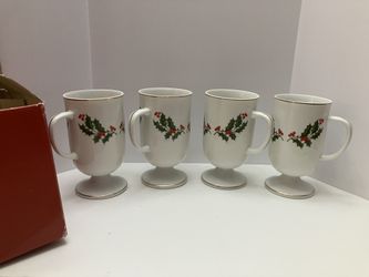 Christmas Holly Fine Porcelain Pedestal Mug Set Of 4 Made in Japan Exclusive New$45Las Vegas, NV