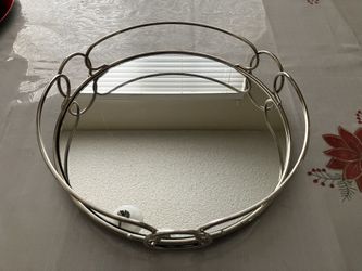 Round 12.5” Mirrored Vanity Decorative Tray Metal Loop Edges Silver Modern New$30Las Vegas, NV
