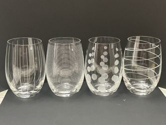 Set of 4 Mikasa CHEERS Stemless Wine Glasses 16oz Etched Lines Dots Swirls New$20Las Vegas, NV