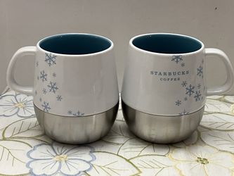 2 Starbucks 2007 Holiday Snowflake Coffee Mug White Blue Stainless Winter 14oz E$20Las Vegas, NV