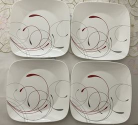 Set of 4 Corelle Vitrelle Splendor Square 10.5” Dinner Plates Red Gray Swirl EC$20Las Vegas, NV