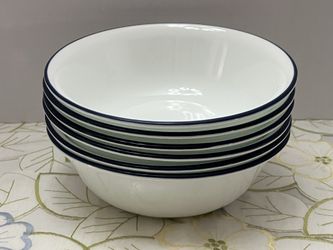 Corelle OCEAN BLUES Set of 6 Soup Cereal Bowls White Navy Dark Blue Rim 6.25” EC$25Las Vegas, NV