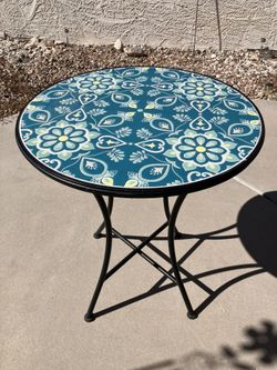 Beautiful 24” Metal Round Table With One Piece Mosaic Ceramic Top Turquoise Floral Heavy $150Las Vegas, NV