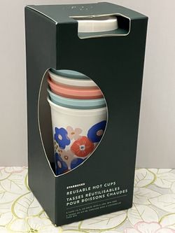 2019 Starbucks Reusable 6 Hot Coffee Cups 16oz Lids BPA Easter Spring Floral New$15Las Vegas, NV