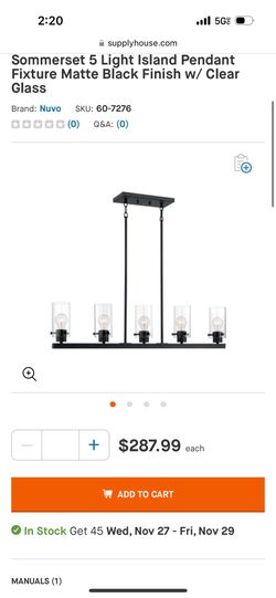 Sommerset 5 Light Island Pendant Fixture Matte Black Finish w/ Clear Glass$100Dallas, TX