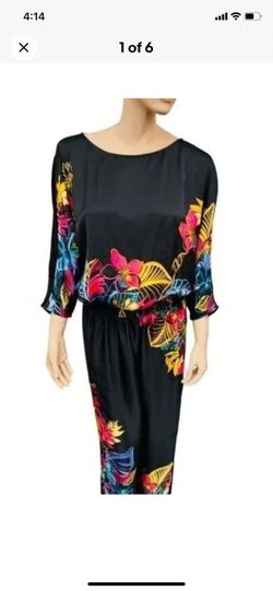 Cache Women’s Sexy Black Multicolor Tropical Floral Split sleeve Jumpsuit M$35Boca Raton, FL