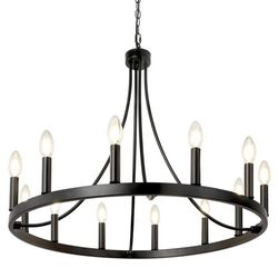 Wellmet 12-Light Black Farmhouse 40" Hexagon Wagon Wheel Chandelier$50Union, SC