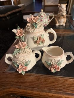 Hand-Decorated Floral Tea Set – Signed & Dated 1995 – Teapot, Creamer, Sugar Bowl$75La Verne, CA