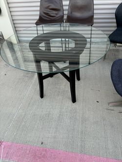 Glass Kitchen Table With 4 Blue Chairs$100Irving, TX