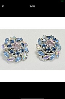 Vtg Blue Austria Crystal Aurora Borealis Prong Set Clip On Earrings Silver-tone$34Tampa, FL