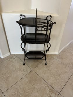 Wrought Iron Wine Rack Side Table w/ Leather Top & Storage$125Oro Valley, AZ