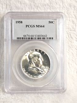 Sold#503 Silver Franklin 1958 MS64 Coin $50Covina, CA