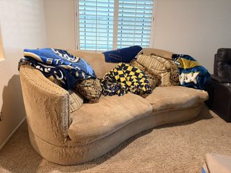 Large Beige Swivel Chair With Brown Fuzzy Throw$30Fontana, CA