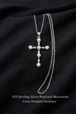 925 Sterling Silver Pearl And MOISSANITE Small cross necklace Size 18” Adjustable $49Henderson, NV