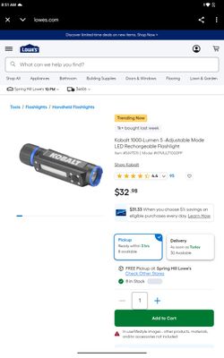 KOBALT 1750 LUMENS RECHARGEABLE FLASHLIGHT$20Spring Hill, FL