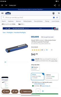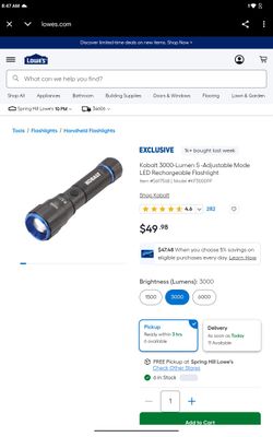 KOBALT 4000 Lumens Rechargeable Flashlight$25Spring Hill, FL