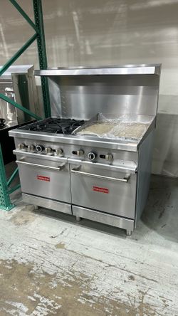 Flamaster FLM-R48-24MG 48" NG/LPG Commercial Gas Range, 4 Open Burners, 24" Griddle, and 2 Standard Ovens, 246,000 BTU $2,499Rowland Heights, CA