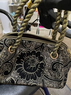 Embroidered paisley print braided strap handbag black & gold in color 10”w X 6”h zip closure$40Springdale, AR