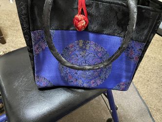 Chinese silk embroidered handbag black and blue in color 9” w x 8” h zippered closure and red knot $20Springdale, AR