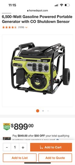 6,500-Watt Gasoline Powered Portable Generator with CO Shutdown Sensor$500Hialeah, FL