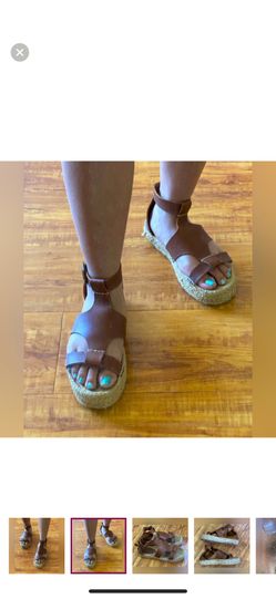Soludos Brown Leather Low Flatform Platform Espadrille Strap Sandal size 5.5$60San Diego, CA