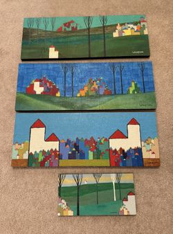 Laszlo Vandor Original Acrylic Paintings on Wood – Aldeas Potemkin (Set of 4)$1,750Encinitas, CA