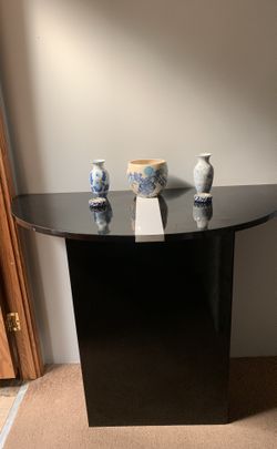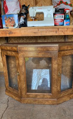 Table with the glass shelf and light and two doors open and leather top$50Wixom, MI